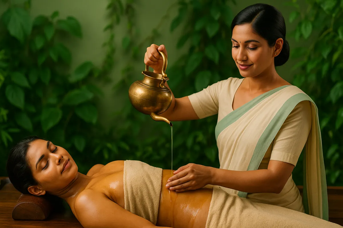 A luxurious and deeply healing therapy that combines oil massage with warm medicated oil pouring.